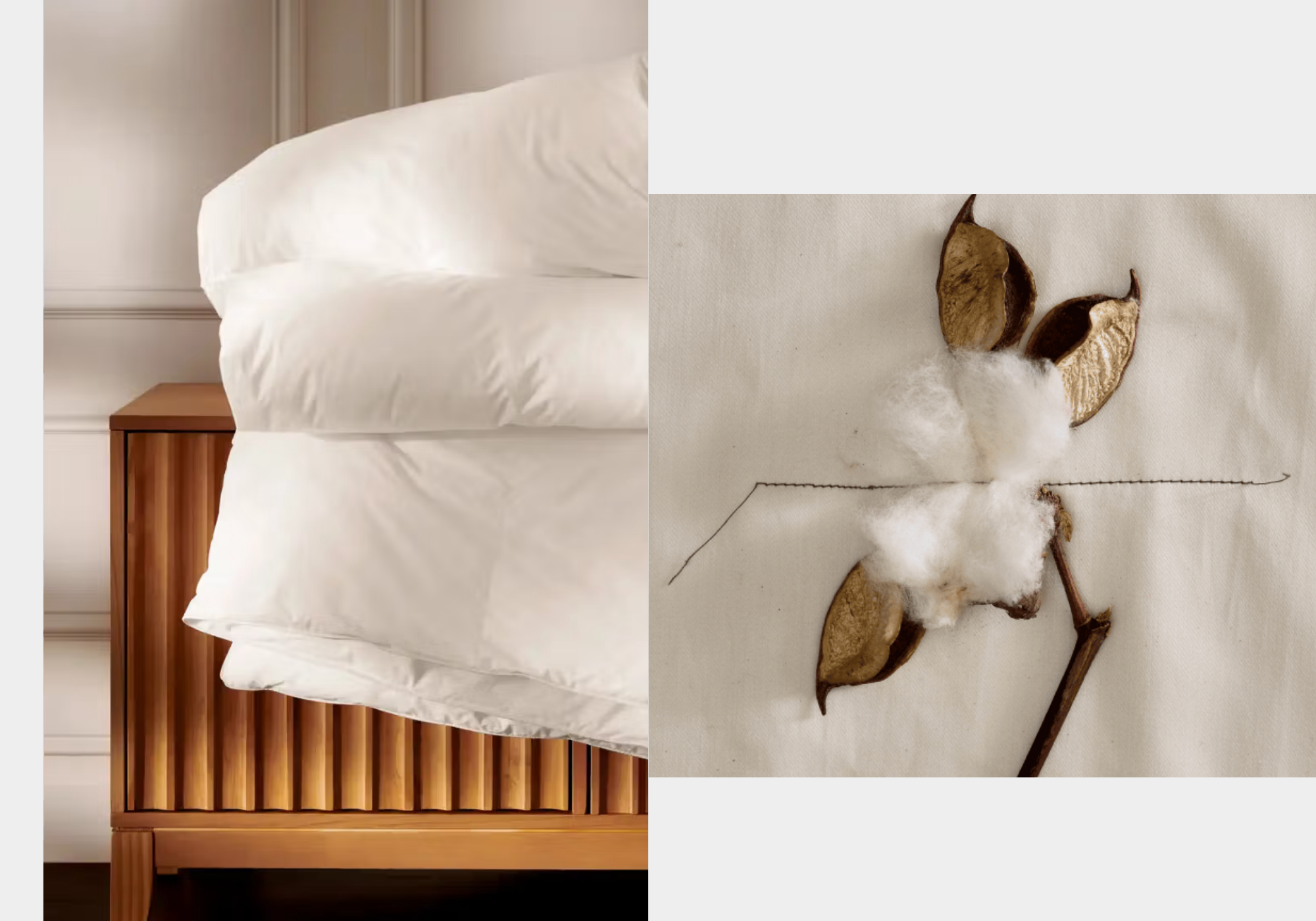 Our duvet shell is carefully woven withhigh-quality organic cotton threadsto prevent down from escaping, keeping your duvet clean and free of feathers.